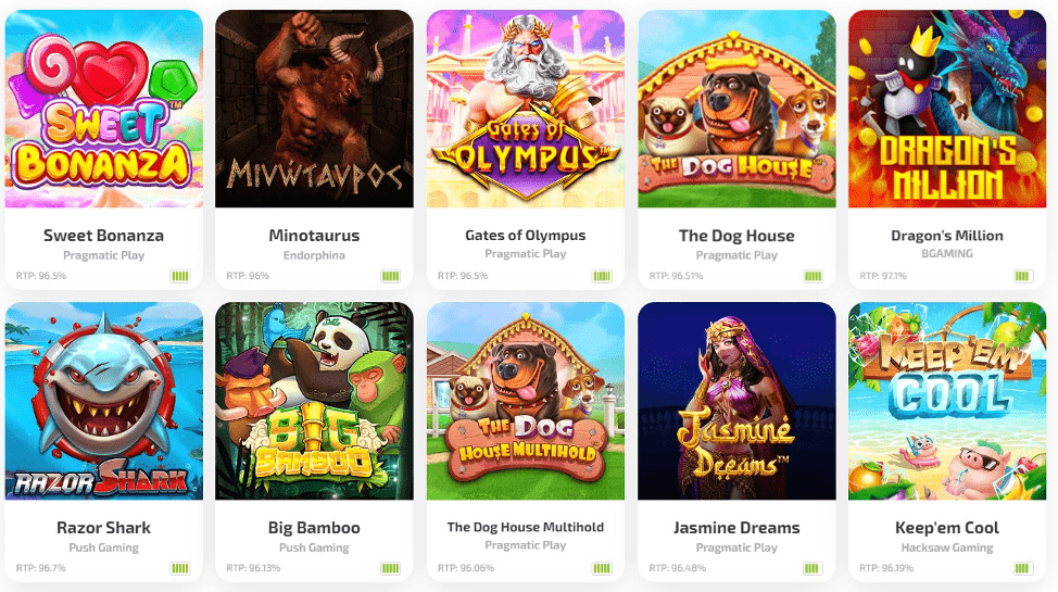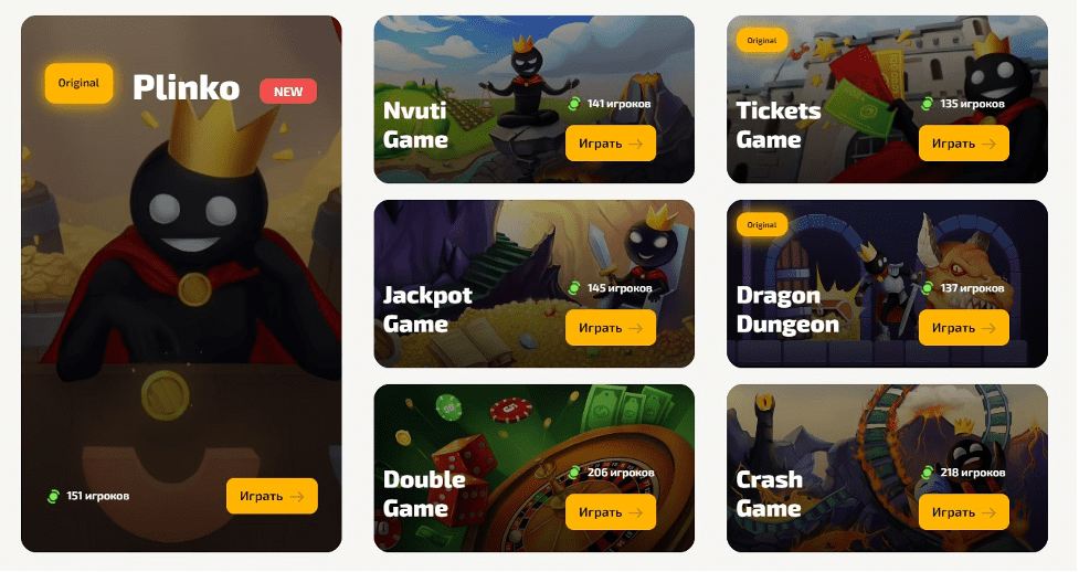 Одна из фишек платформы – эксклюзивные игры. Это аналог слотов с простым, минималистичным интерфейсом и невероятно увлекательным геймплеем, доступные исключительно в Драгон Мани.