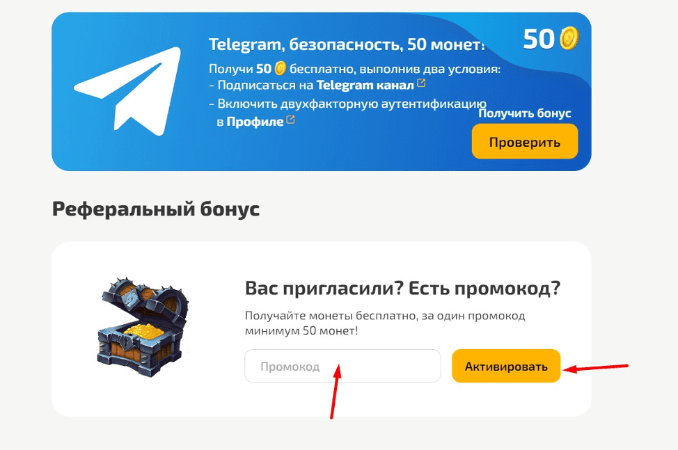Коды активируются в разделе «Бонусы». Там есть специальное поле, куда необходимо их ввести, а затем нажать кнопку «Активировать».